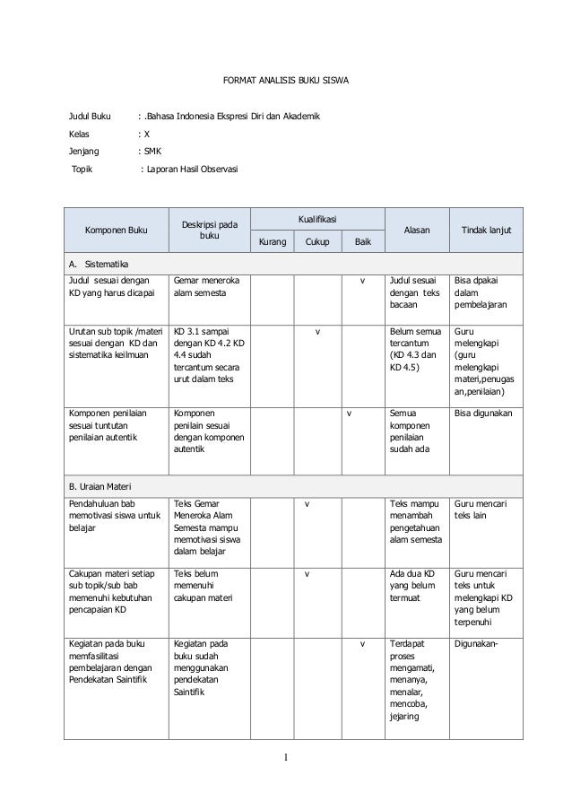 Format analisis buku siswa . Sumber Gambar : www.slideshare.net